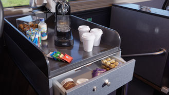 Egal, ob Liegesitze mit drehbarer Tisch/Beinauflage, Entertainment-System oder Bistro, dieses Fahrzeug spielt alle Stücke. Je nach Anspruch kann die Küche mit Kaffeemaschine, Mikrowelle oder Schankanlage ausgestattet werden. Technisch verfügt er über alle nötigen Features für Videoanalysen, Briefing und Entspannung. Lademöglichkeiten für Tablet oder Mobiltelefon findet man an jedem Sitz. Laptop, Tablet und Co können via HDMI mit den Bildschirmen an Bord verbunden werden. Alle Tische in unserem teamliner sind absenkbar und verwandeln sich in bequeme Liegeflächen.
